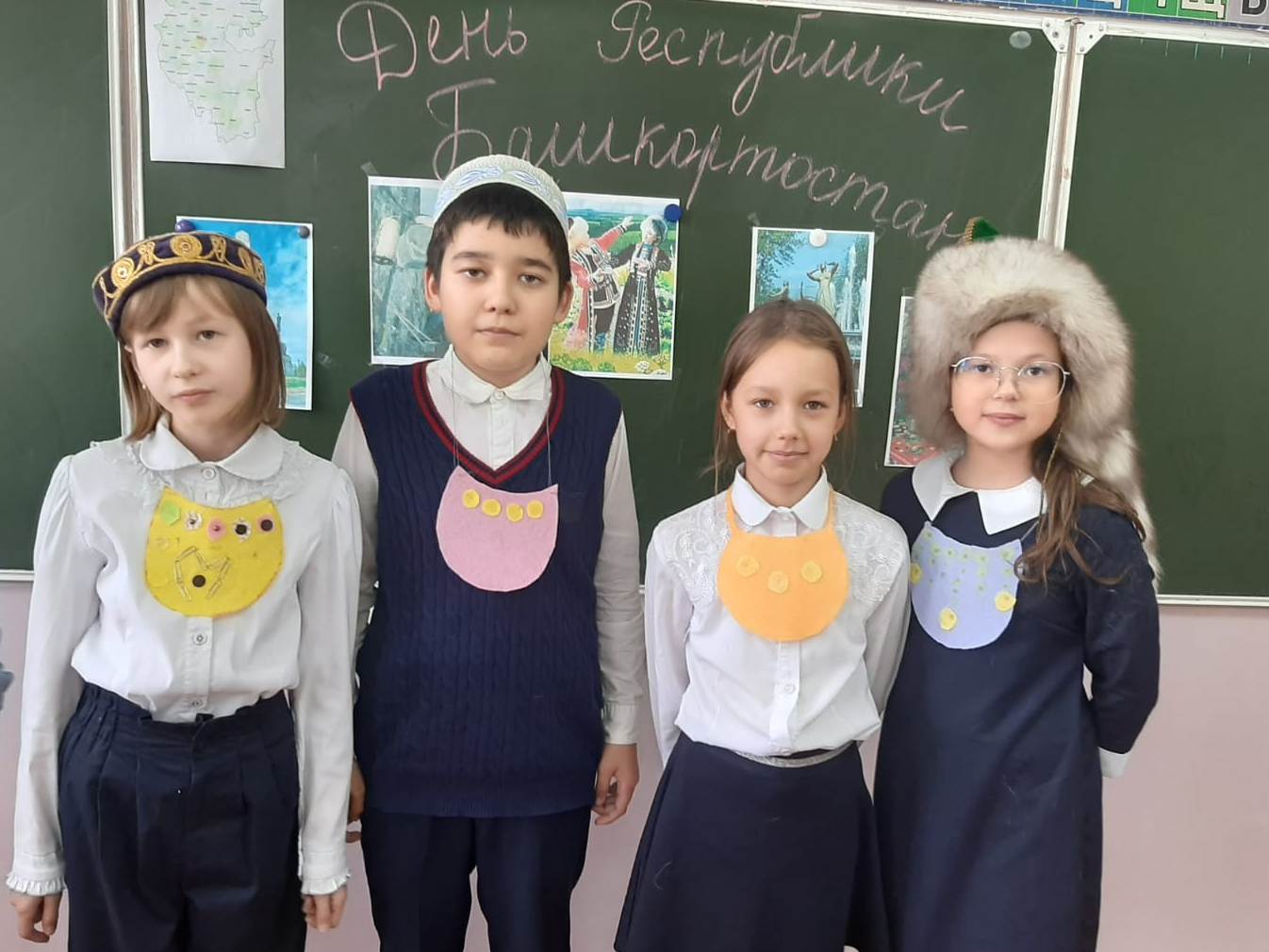 Сегодня в 4а классе, под руководством учителя Афанасьевой Н.А. прошёл классный час, посвящённый Дню Республики Башкортостан. В классе была организована увлекательная игра, "Путешествие по Республике", где ребята разгадывали шарады, загадки, вспомнили города и села Башкортостана, поговорили о достопримечательностях нашей Республики. Так же ребята подготовили художественные номера, Новикова Яна исполнила башкирский национальный танец "Приготовление Чак-Чак", прозвучала песня в исполнении ребят "Башкортостан - венец Урала". А ещё ребята изготовили своими руками национальное украшение Башкирский нагрудник. В завершении мероприятия, попробовали национальное блюдо Чак - Чак.