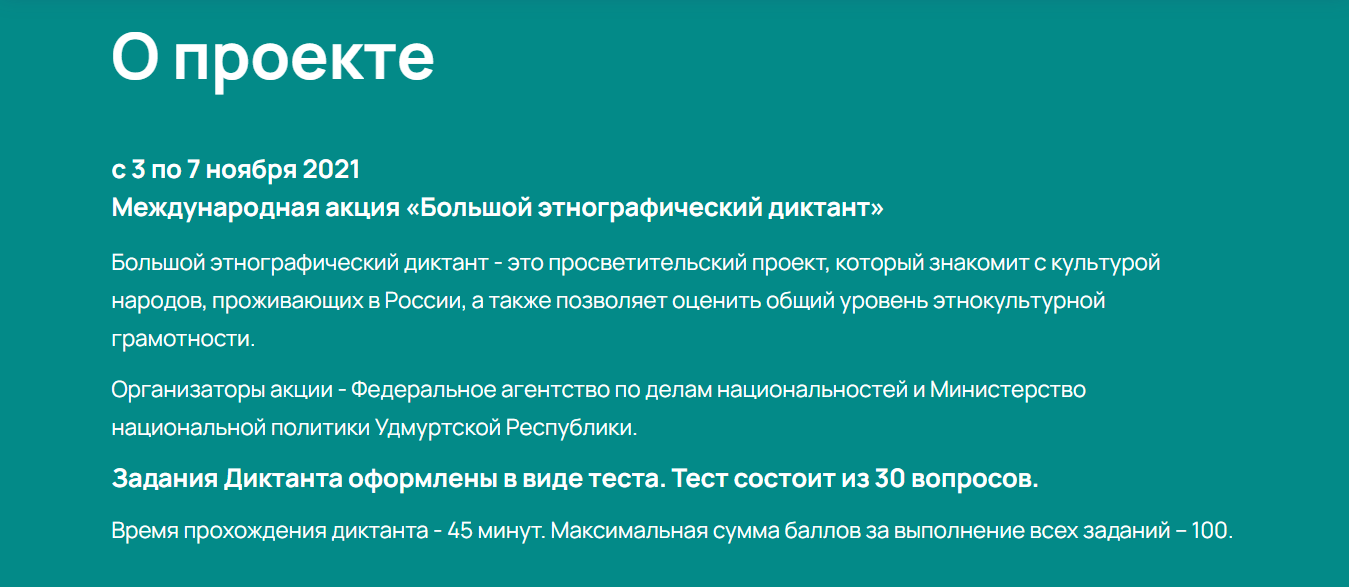 С 3 по 7 ноября 2021 года в России пройдет VI Международная просветительская акция «Большой этнографический диктант» в онлайн-формате на сайте www.miretno.ru.